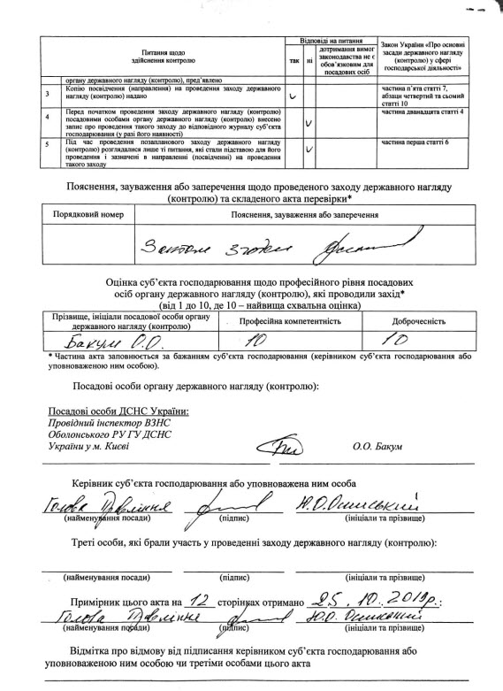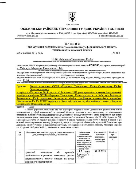 Ниже Вы можете ознакомиться с списком нарушений, выявленных во время проверки, а также предписанием, которые должно было быть выполнено до 31 декабря 2019 года.