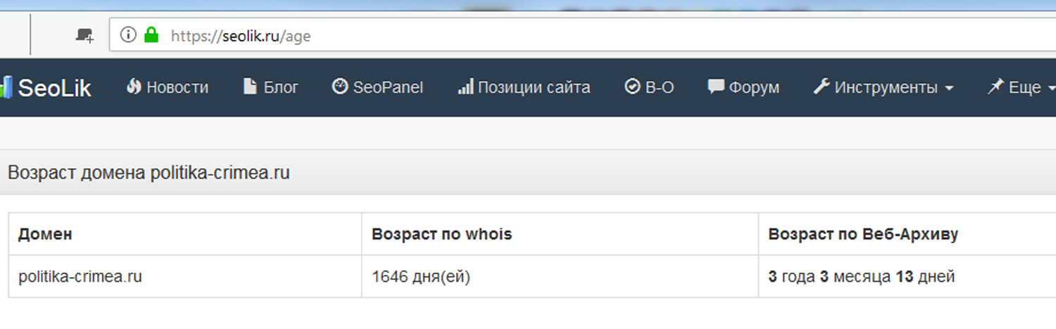 На сайте, правда, указано, что статья опубликована в 2013 году. Но если запросить возраст сайта, можно увидеть, что он был создан в 2014-2015 году, уже во время российской агрессии против Украины.
